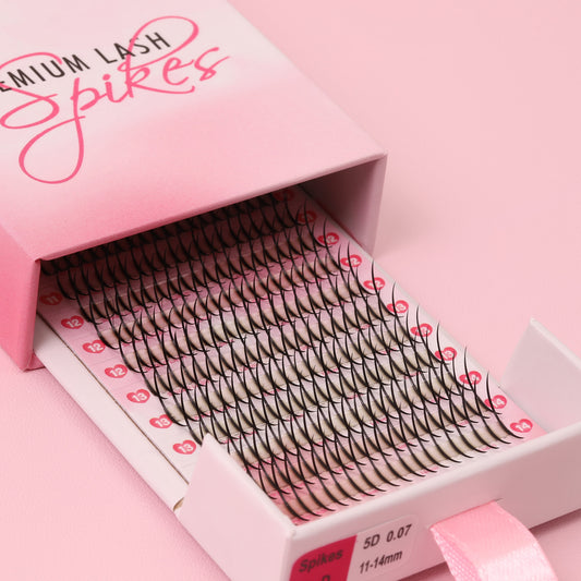 You need lash fans, spikes, and single lashes to create spike lashes. You may not know that you can buy all 3 of these components ready-made without having to create spikes or fan lashes.