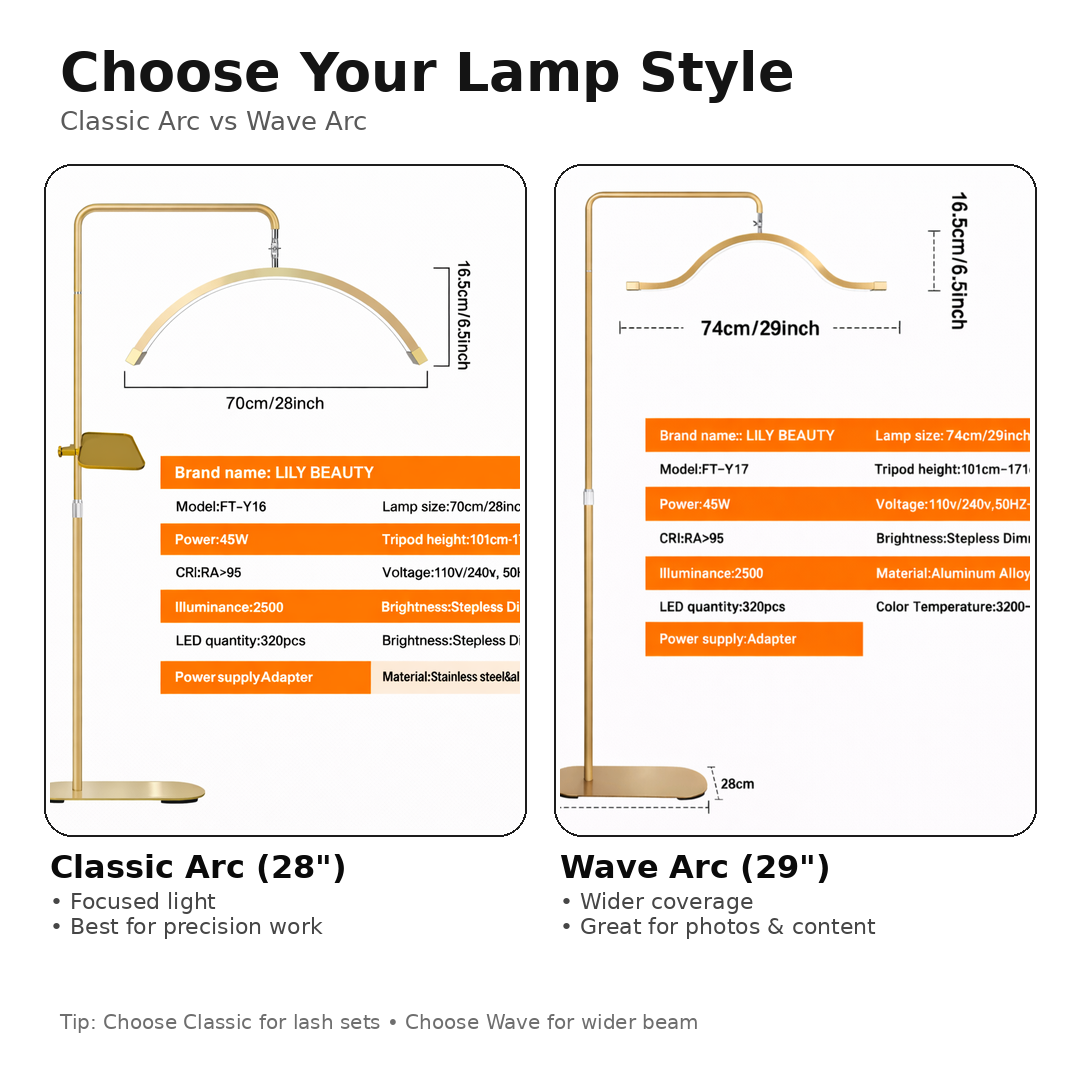 The curved moon design delivers soft, balanced light across the entire lash line — reducing harsh shadows and eye strain.